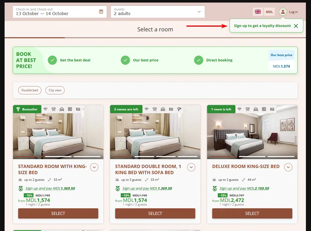 - Also, since you have spent 1 night with us, here is a rewarding bonus for your future bookings — 15% Discount.